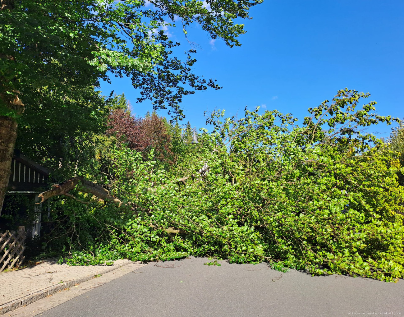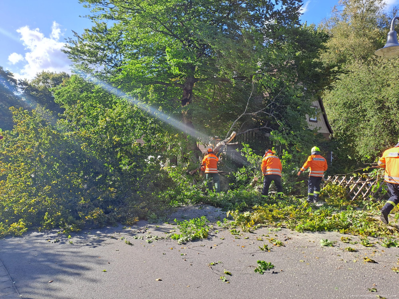 Beim Eintreffen bestätigte sich die Lage: Ein großer Ast eines Laubbaumes war abgebrochen und blockierte die Fahrbahn.